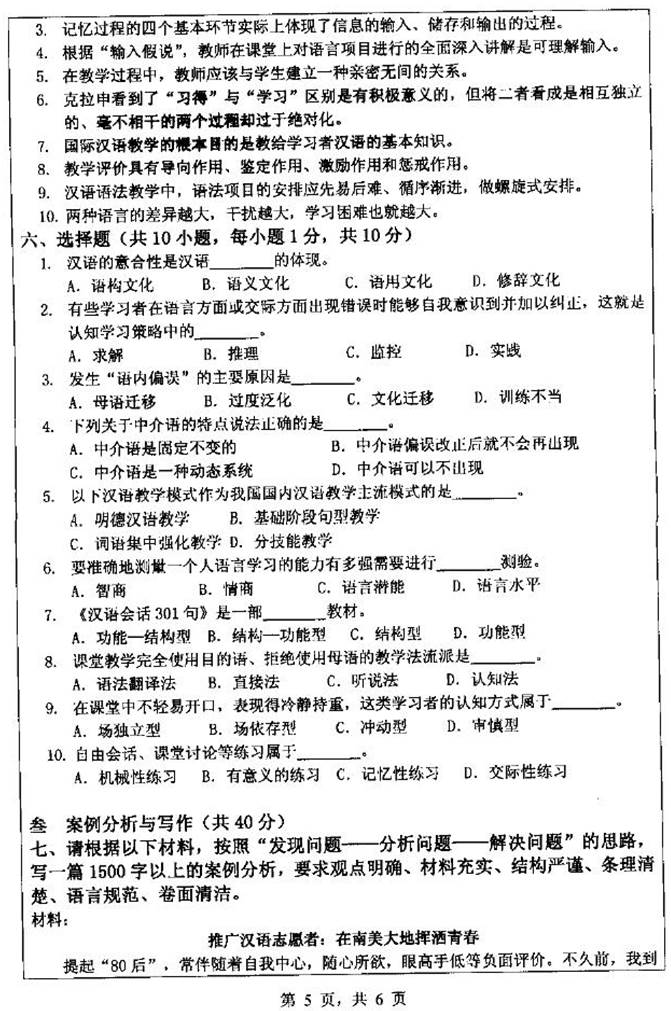2. 全国名校汉语国际教育硕士《445汉语国际教育基础》考研真题精选