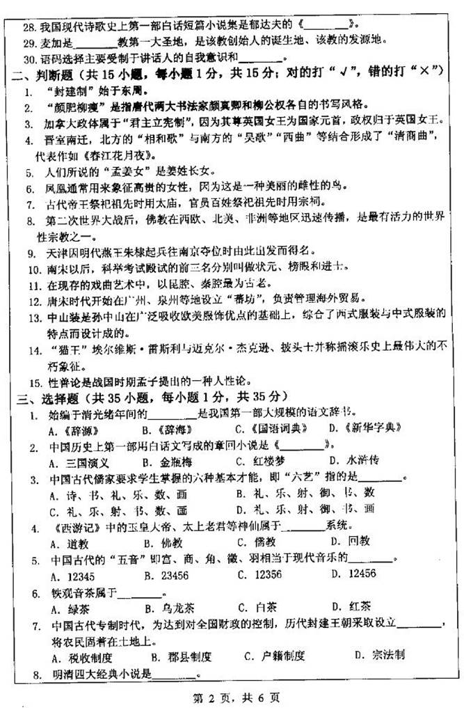2011年浙江师范大学国际文化与教育学院445汉语国际教育基础[专业硕士]考研真题