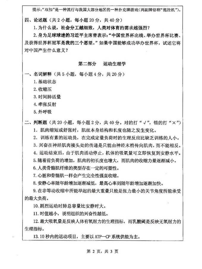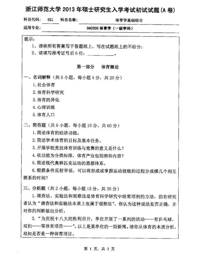1. 浙江师范大学体育与健康科学学院《621体育学基础综合》历年考研真题汇总