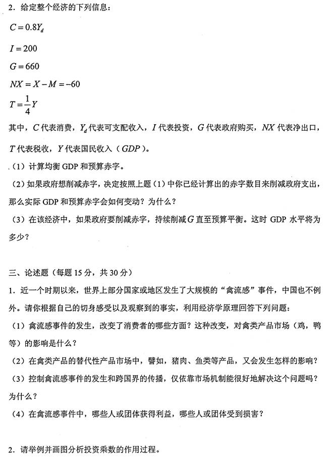 2. 全国名校经济学考研试卷分析及真题(含北大清华人大复旦等名校)