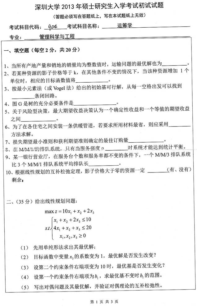 1. 深圳大学管理学院916运筹学历年考研真题汇总(含部分答案)