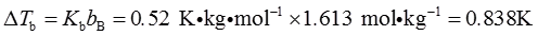 进而得该溶液的正常沸点为(373.15+0.838)K=373.99K。