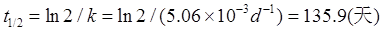 【解析】该反应为一级反应,速率常数为 ,半衰期为