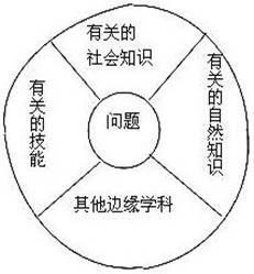【解析】课程是对教育的目标、教学内容、教学活动方式的规划和设计,是教学计划、教学大纲等诸多方面实施过程的总和。核心课程是一种课程设计。在此设计中,儿童的学习有一个中心,所有的学习活动都围绕着这个中心进行。分为三种类型:一是以学科为核心,即以分科、相关、融合或广域课程为核心;二是以活动为核心,作为联络各种教学内容的手段;三是以社会生活领域或社会问题为核心,上图正是第三种类型的核心课程。