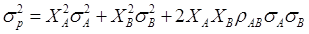 【解析】令这两种收益完全负相关的证券为A、B,其投资比重分别为XA和XB,证券A、B的相关系数为ρ=-1,各自的标准差分别为σA和σB,那么该资产组合的标准差为: