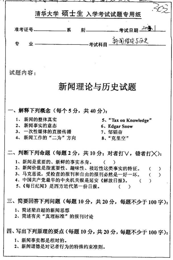 2018年清华大学《618新闻与传播史论》考研真题(回忆版)