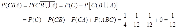 1设A,B,C为三个随机事件,且P(A)=P(B)=P(C)=1/4,P(AB)=0,P(AC)=P(BC)=1/12,则A,B,C中恰有一个事件发生的概率为( )。[数一2020研]