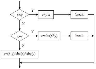 z=(x-y)/abs(x)*abs(y); //abs()为取绝对值函数