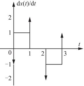 d[x(t)]/dt=[u(t)-u(t-1)]-[u(t-2)-u(t-3)]-δ(t)+2δ(t-1)-2δ(t-2)+δ(t-3)。