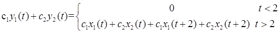 设系统算子为T,则c1x1(t)+c2x2(t)通过系统后的结果T[c1x1(t)+c2x2(t)]为