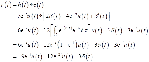 对该响应求导可得冲激响应为h(t)=r1′(t)=2δ(t)-4e-2tu(t)+δ′(t),则系统对激励e(t)=3e-tu(t)的零状态响应为
