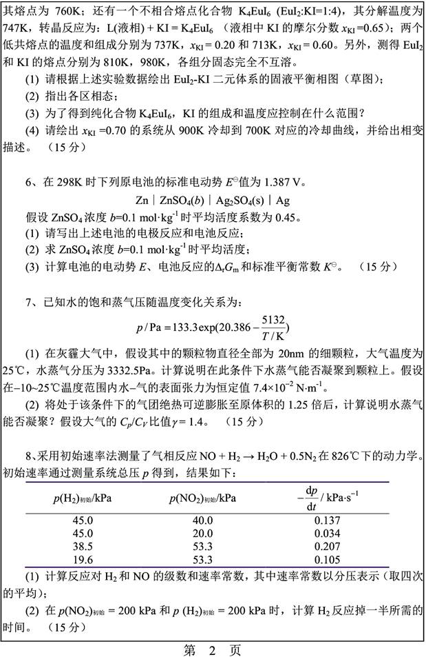 2.湖南大学物理化学历年考研真题