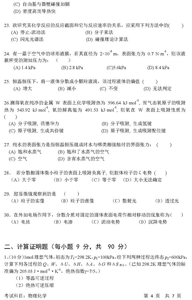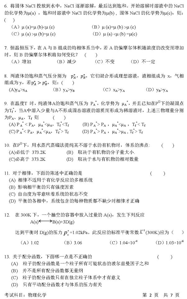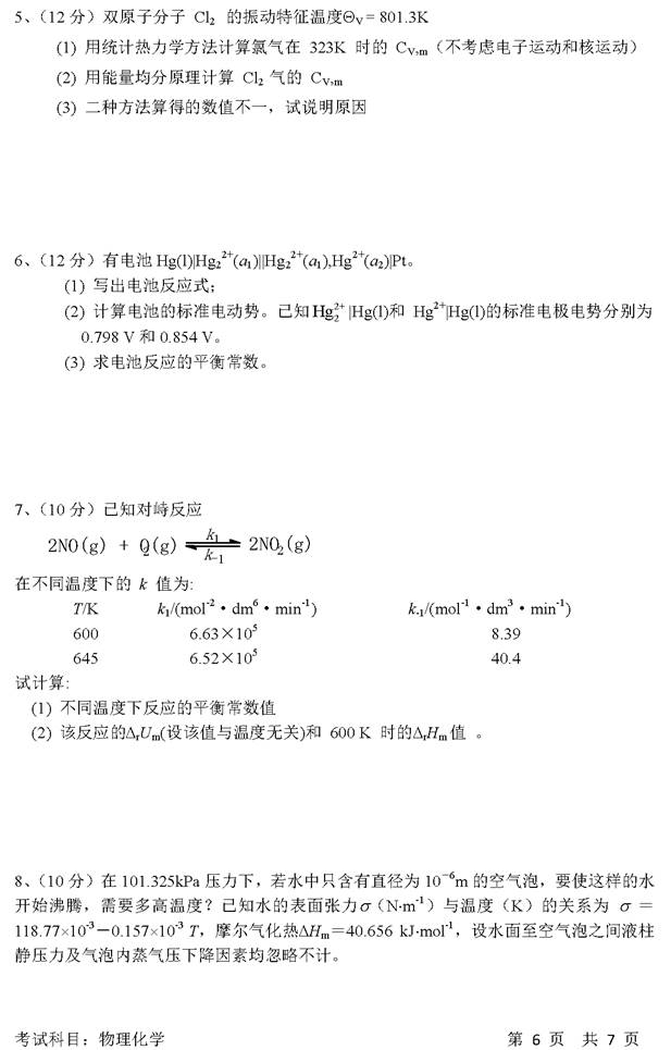 2. 全国名校物理化学考研真题汇总(含部分答案)