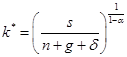 稳态时满足条件sy=(n+g+δ)k,即skα=(n+g+δ)k。