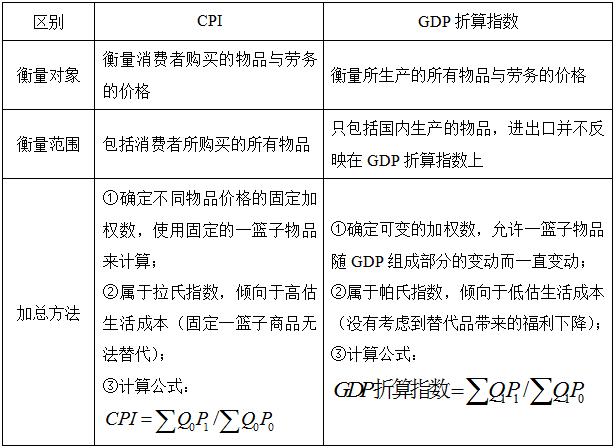 3CPI与GDP折算指数之间的区别(见表12-8)