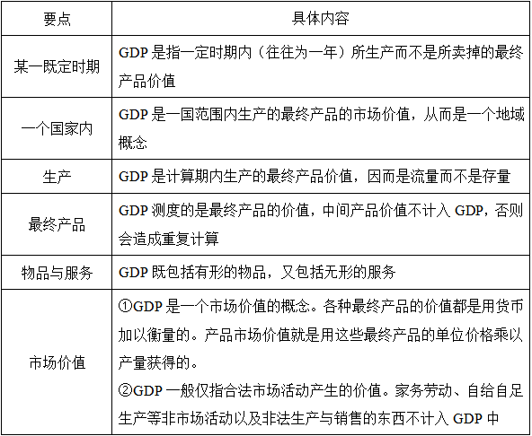 GDP是指一个国家或地区在一定时期内所生产的全部最终产品和劳务的市场价值,可使用支出法、收入法、生产法进行计算。