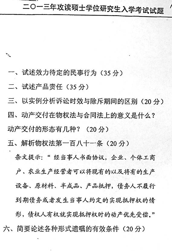1. 清华大学法学院《978专业综合卷三(含民法学、商法学)》历年考研真题汇总(含部分答案)