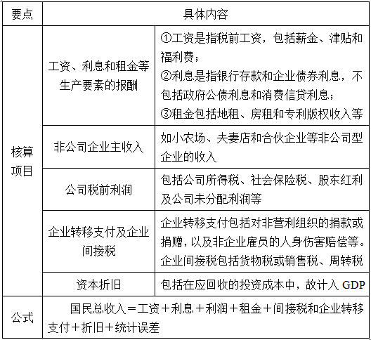 表1-3 收入法的核算项目及公式