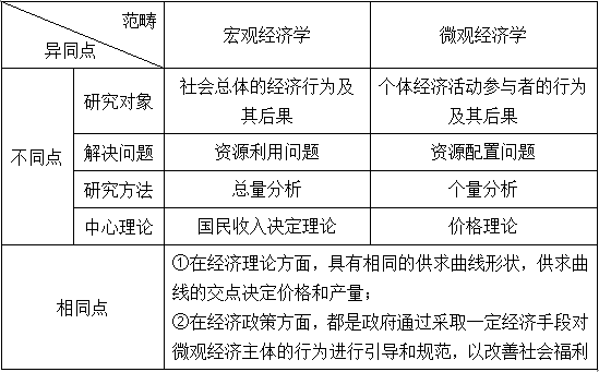 2宏观经济学与微观经济学的异同(见表1-1)
