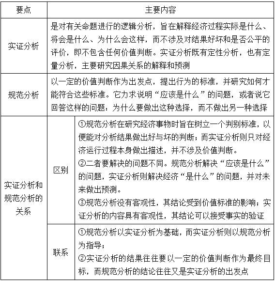 考点二:微观经济学的分析方法——实证分析和规范分析(见表1-2) ★★