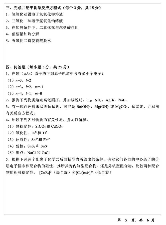 2. 全国名校无机化学考研真题汇总(含部分答案)