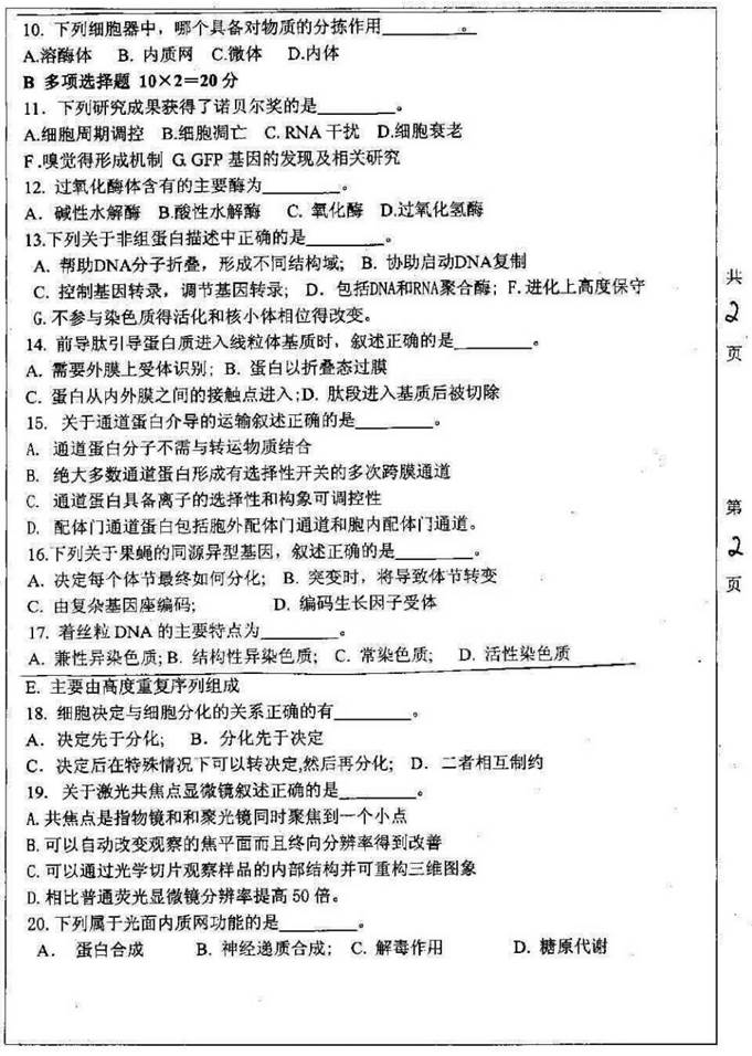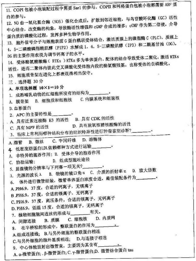 2. 全国名校细胞生物学考研真题汇总(含部分答案)