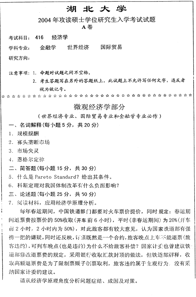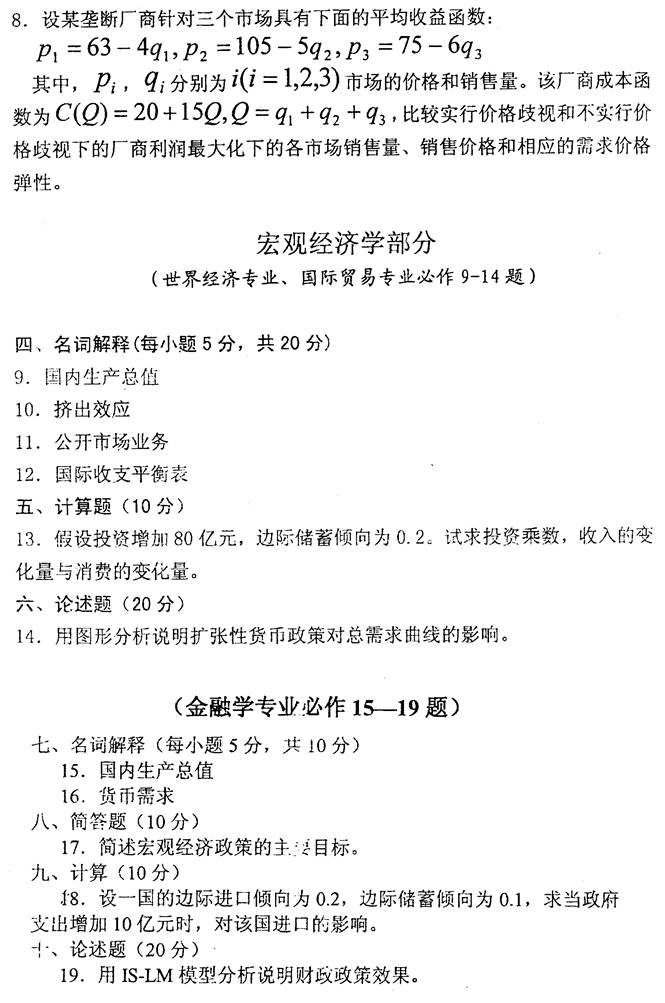 2. 全国名校经济学考研试卷分析及真题(含北大清华人大复旦等名校)