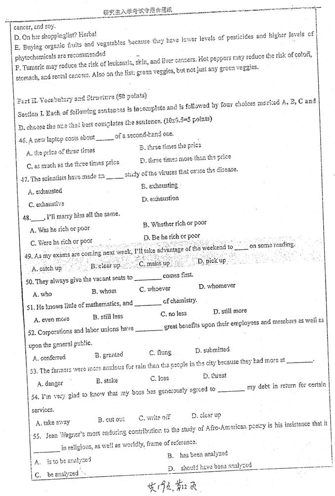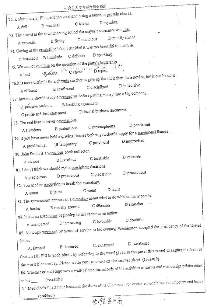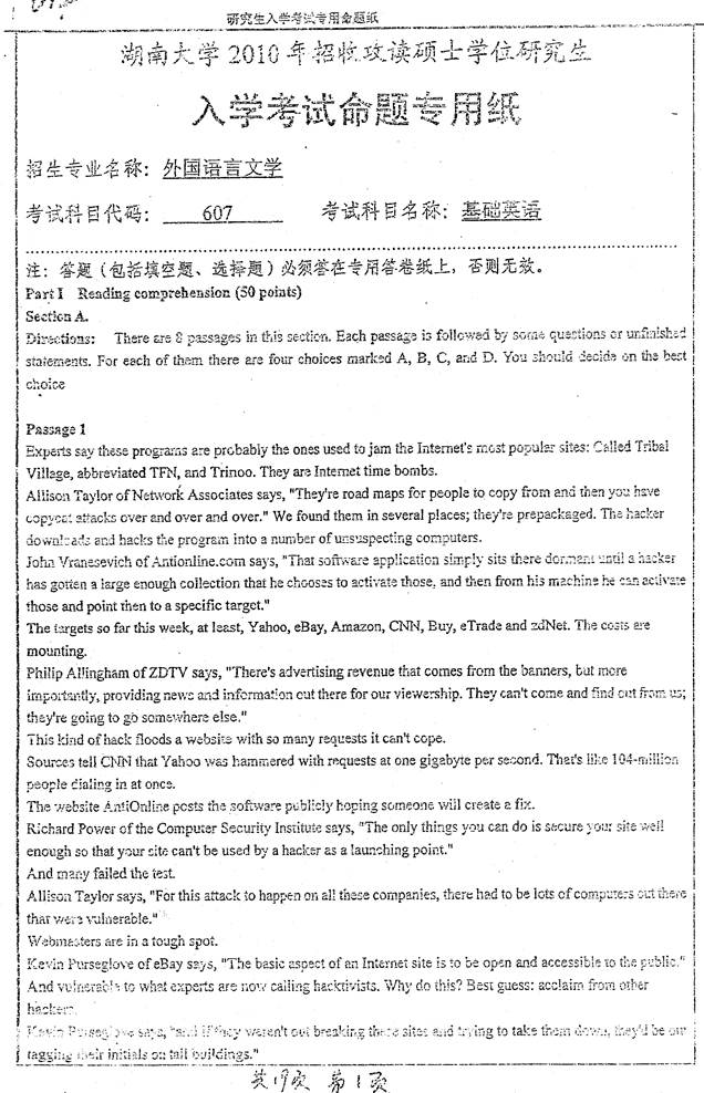 1. 湖南大学外国语与国际教育学院《706基础英语》历年考研真题汇总