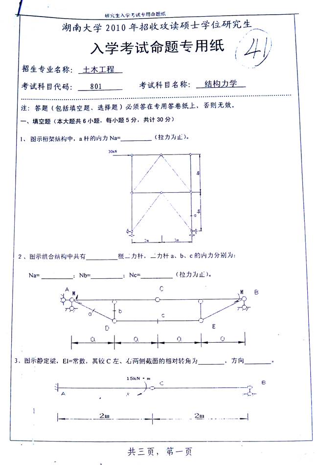 1. 湖南大学《801结构力学》历年考研真题汇总