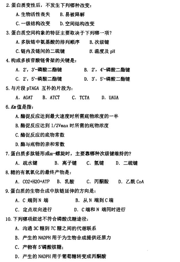 2. 工程硕士《338生物化学》名校考研真题汇总