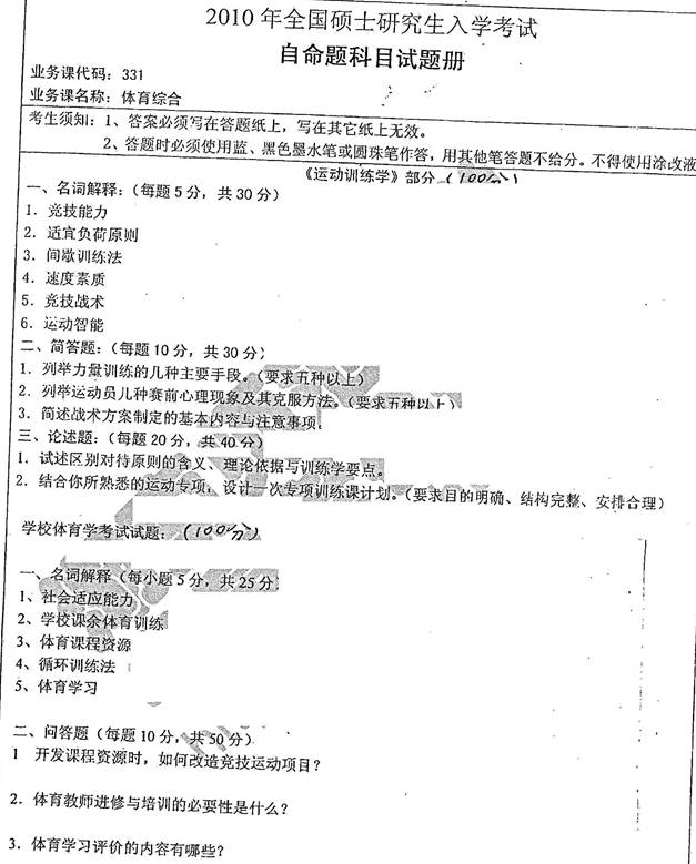 2. 全国名校体育硕士《346体育综合》考研真题汇总