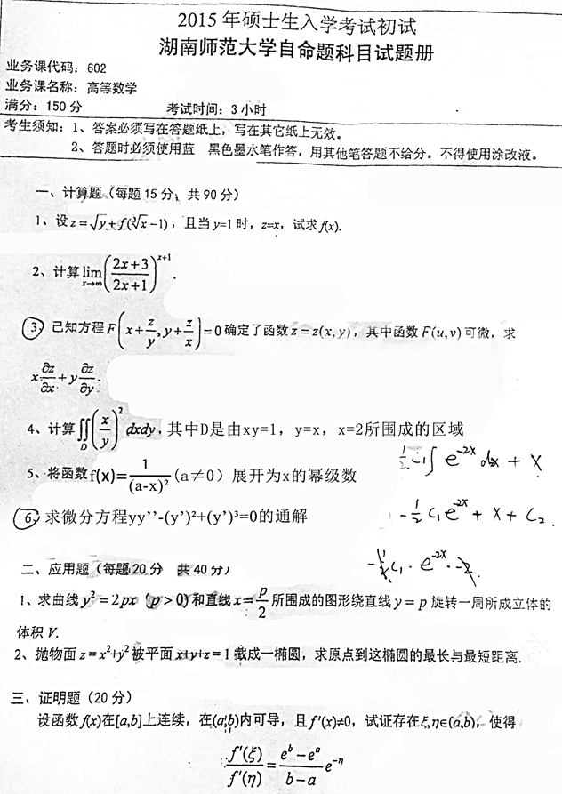 1. 湖南师范大学资源与环境科学学院《602高等数学》历年考研真题汇总