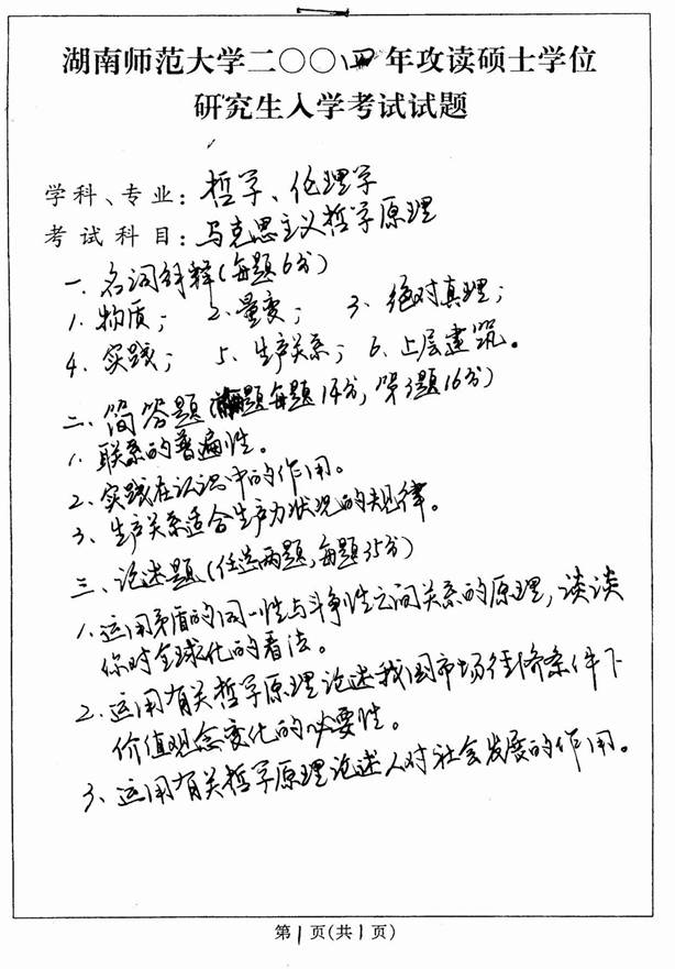 1. [电子书]湖南师范大学公共管理学院《哲学原理》历年考研真题汇总