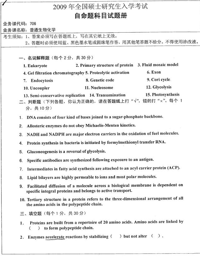 2. [电子书]全国名校生物化学考研真题汇总(含部分答案)