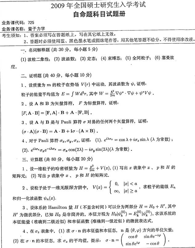 1. 湖南师范大学物理与电子科学学院《量子力学》历年考研真题汇总
