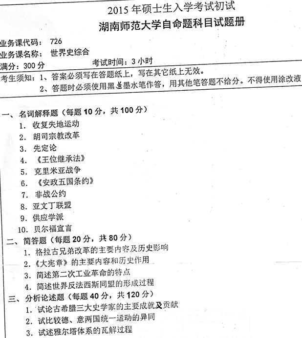 1. 湖南师范大学历史文化学院《世界史综合》历年考研真题汇总