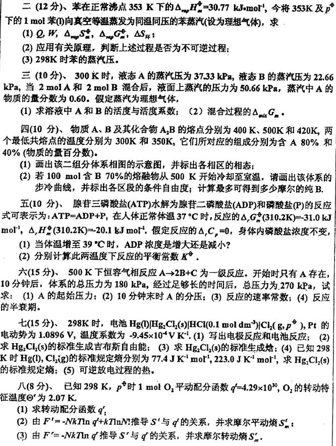 2. 全国名校物理化学考研真题汇总(含部分答案)