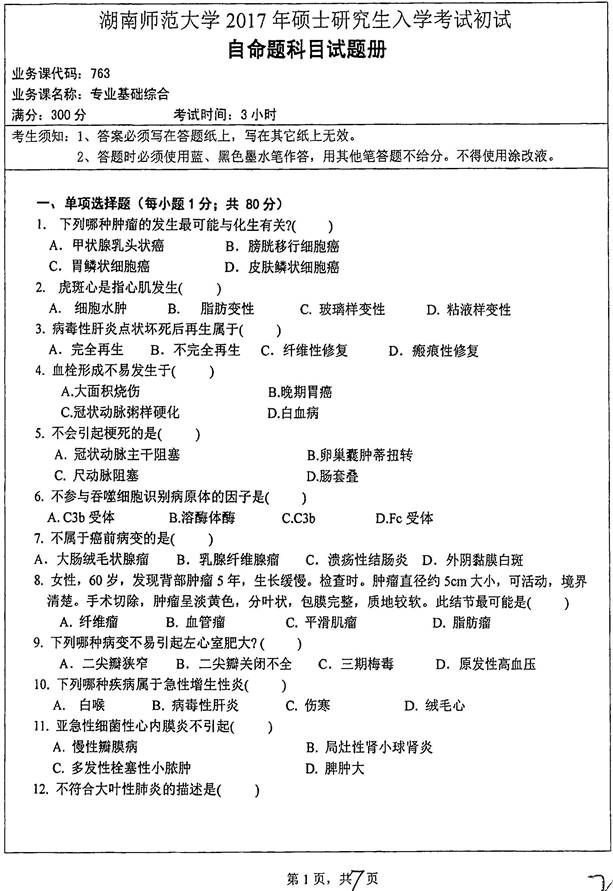 1. [电子书]湖南师范大学医学院《专业基础综合》历年考研真题汇总