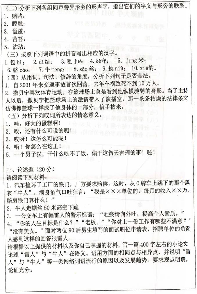 2023年湘潭大学《813语言基础》考研真题(回忆版)