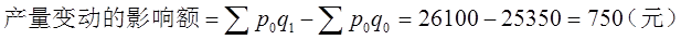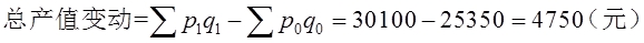 即报告期与基期相比,总产值增加了4750元,其中产量变动使总产值增加了750元,价格变动使总产值增加了4000元。