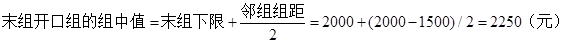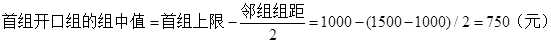 4.某外商投资企业按工资水平分为四组:1000元以下;1000~1500元;1500~2000元;2000元以上。第一组和第四组的组中值分别为( )。