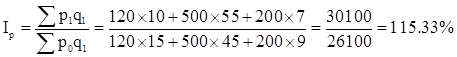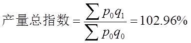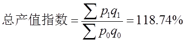 即报告期与基期相比,总产值升高了18.74%,产量变动使产品总产值增加了2.96%,价格变动使产品总产值升高了15.33%。