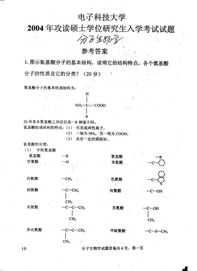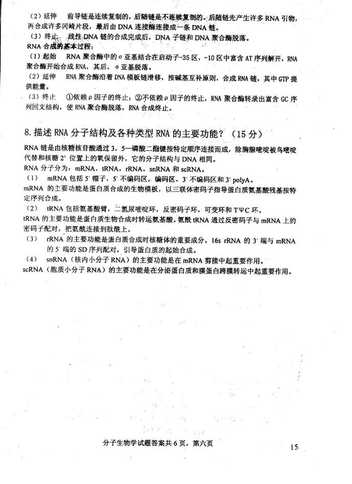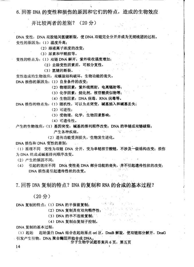 2. 全国名校分子生物学考研真题汇总(含部分答案)