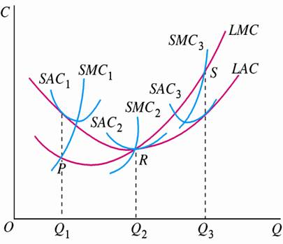 图3 长期平均成本、长期边际成本和短期平均成本的关系