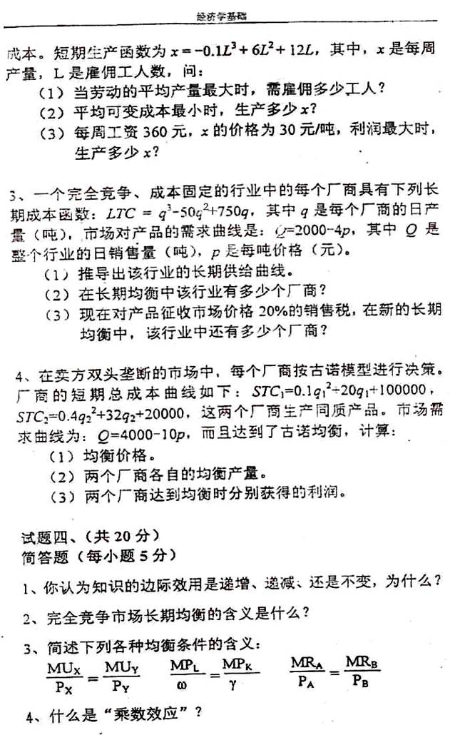 3. 全国名校经济学考研试卷分析及真题(含中央财大、武汉大学等名校)
