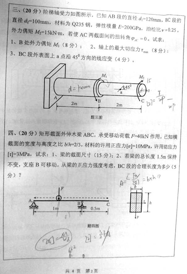 2003年石家庄铁道学院材料力学考研真题(部分)