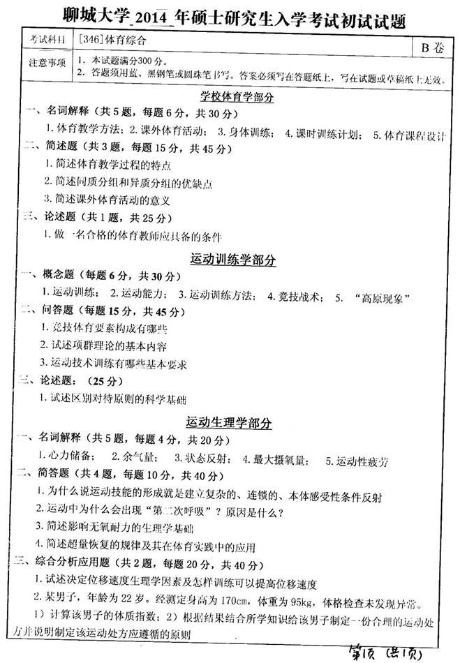 2014年聊城大学346体育综合[专业硕士]考研真题