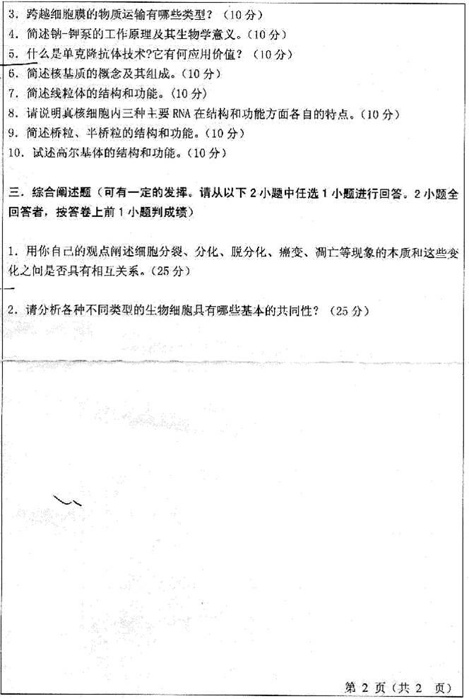 2. 全国名校细胞生物学考研真题汇总(含部分答案)