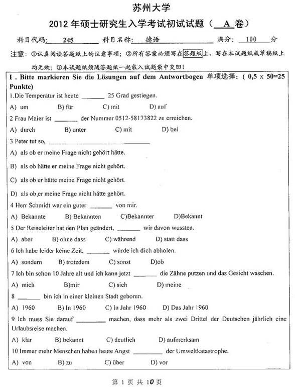 1. 苏州大学外国语学院《245德语》历年考研真题汇总