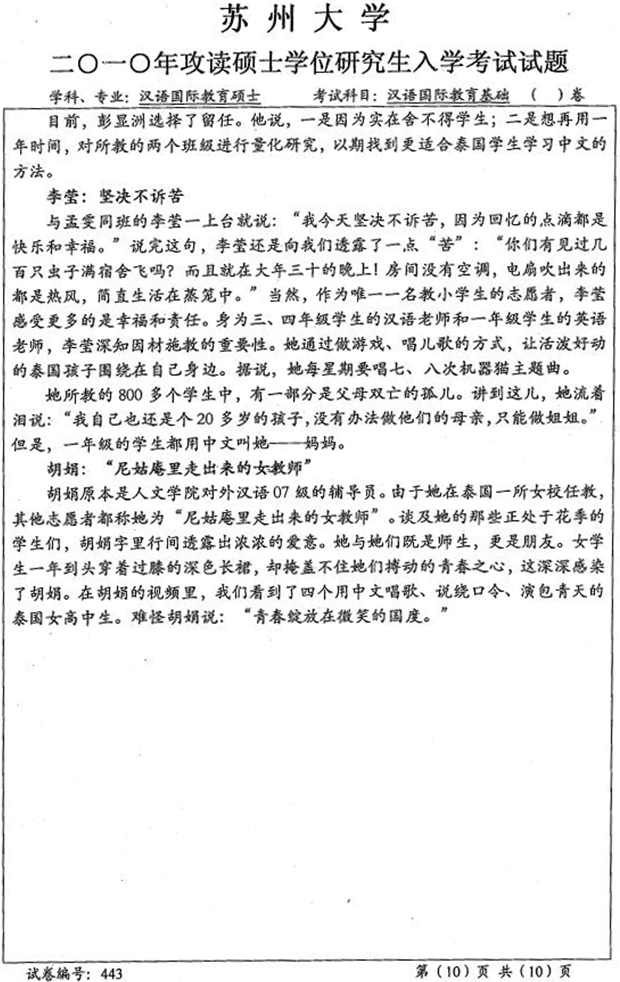 2010年苏州大学文学院443汉语国际教育基础[专业硕士]考研真题